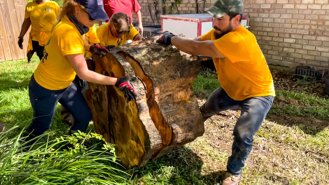 Ao chegar a Luisiana, os Ministros Voluntários de Scientology fizeram logon em crisiscleanup.org para localizar os bairros mais necessitados de ajuda. Ao conectarem‑se com a Igreja Baptista do Monte Sião, eles descobriram que os paroquianos precisavam de ajuda. Muitas vezes, quando terminaram um projeto, alguém ao lado ou do outro lado da rua também precisava de uma mão, e eles estavam felizes por ajudar.