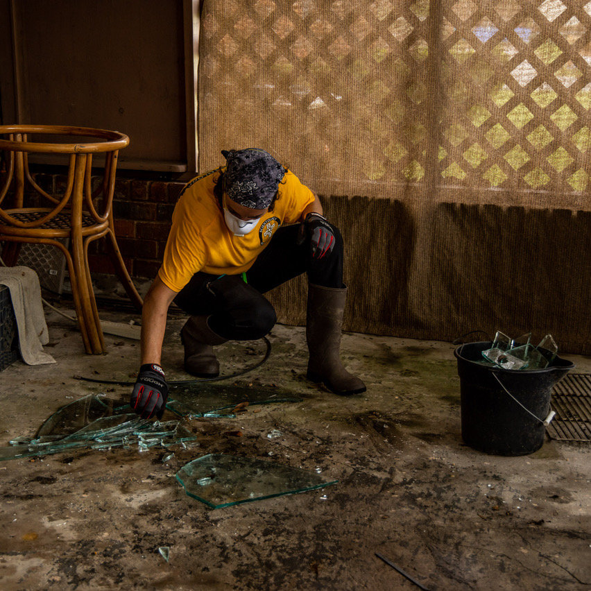 Durante as últimas duas semanas, a equipa limpou casas danificadas por inundações para evitar mais danos e tornar possível o início da reconstrução e renovação. Eles cortaram e removeram as árvores caídas. Eles tiraram ramos partidos de árvores para evitar que estes caíssem sobre transeuntes desprevenidos.