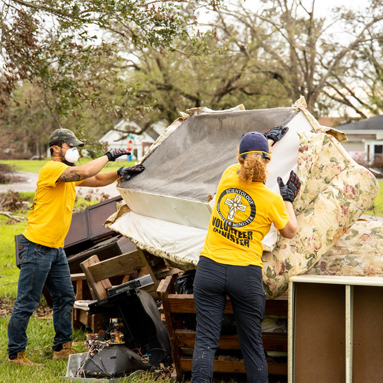 Sempre que necessário, os Ministros Voluntários providenciaram Ajudas de Scientology — técnicas desenvolvidas pelo Fundador de Scientology, L. Ron Hubbard, que vieram a ser conhecidas como “primeiros socorros espirituais”. As Ajudas ajudam as pessoas a superar a perda e a confusão com tanta frequência experimentada em tempos de desastre.