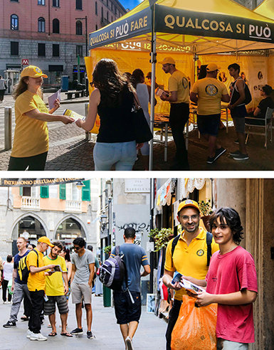 Os Ministros Voluntários de Milão visitam regularmente a comunidade, oferecendo ajuda a toda a gente. A sua tenda amarela adorna a Piazza Argentina, onde as pessoas podem ler os painéis com os 19 capítulos de O Manual de Scientology, pegar num folheto sobre qualquer desses assuntos e até receber seminários no local. Dois visitantes partilharam que tinham estado sempre intrigados sobre Scientology e estavam contentes com o quão aberta era a tenda e quão fácil era de visitar para que pudessem descobrir por eles mesmos.